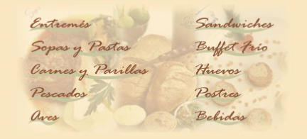Sopa de Cebolla con Queso (gratineé).Sopa de Tortilla.Sopa de Ajo con 1 Huevo.Sopa de Verduras.Crema de Berros y Almendras.Sopa de Lentejas.Sopa de Cola De Res.Canelones Al Horno.Spaghetti Bolognesa ó Carbonara.Ravioles A La Italiana.